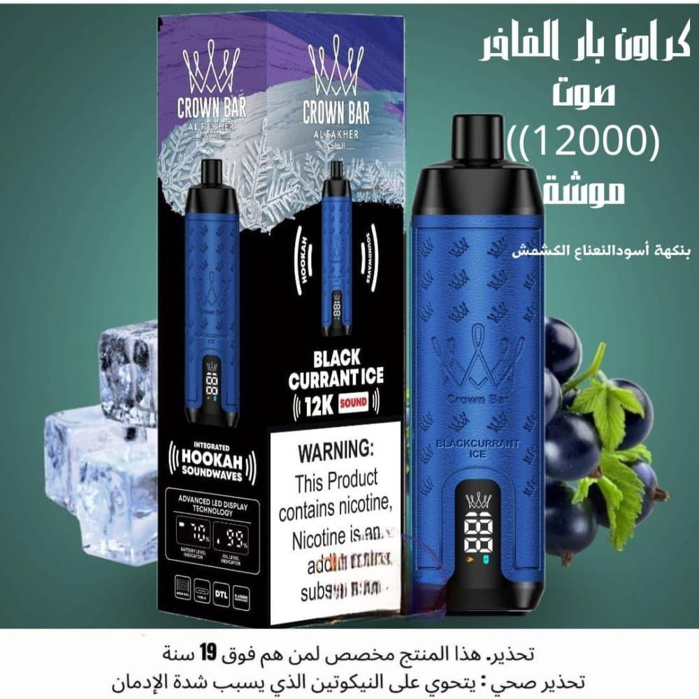 استمتع بتجربة البلاك كارنت ايس مع كراون بار الفاخر 12000 سحبة بلاك كارنت ايس ودع كل سحبة تأخذك إلى عالم من النكهة المنعشة!