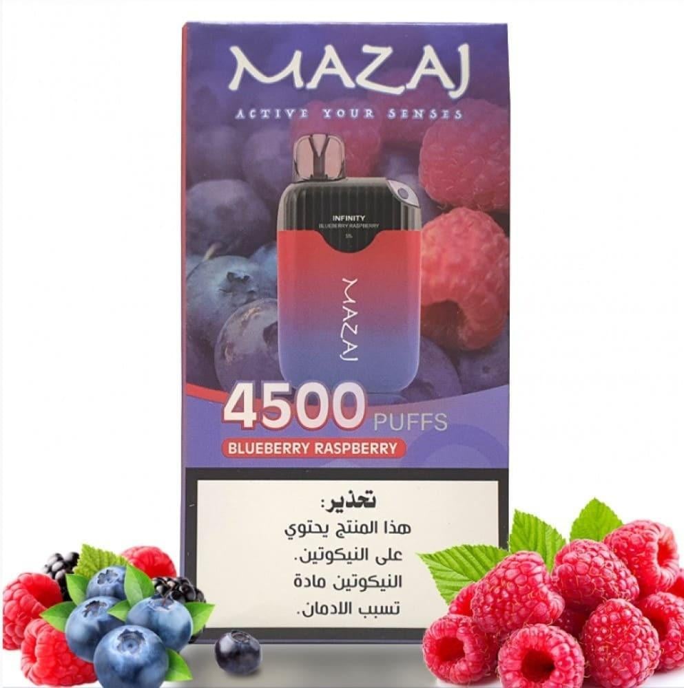 سحبة مزاج بنكهة مكس توت بلو بيري رايز بيري 4500 موشة MAZAJ 4500 PUFFS INFINITY BLUEBERRY RASPBERRY