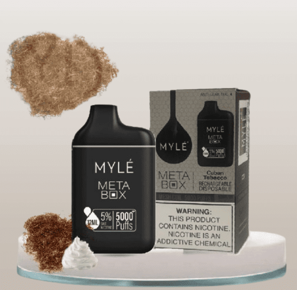 سحبة مايلي 5000 موشة بطعم توباكو كوبانو | MYLE 5000 PUFFS META BOX DISPOSABLE DEVICE CUBAN TOBACCO