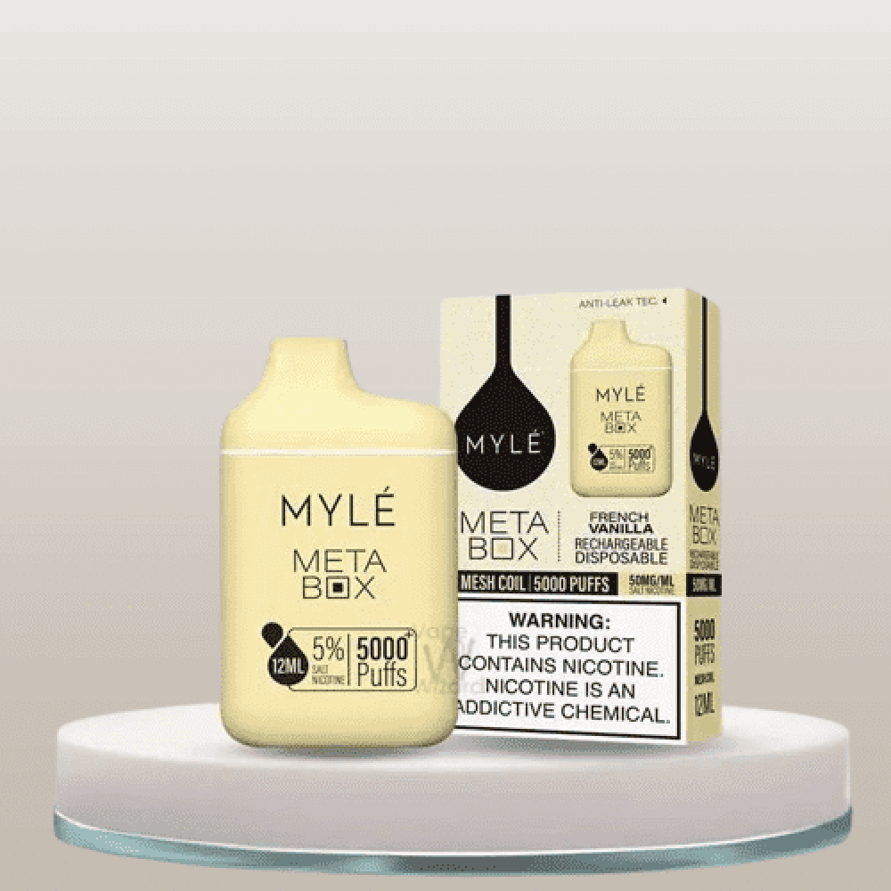 سحبة مايلي 5000 موشة بطعم فانيلا | MYLE 5000 PUFFS META BOX DISPOSABLE DEVICE FRENCH VANILLA